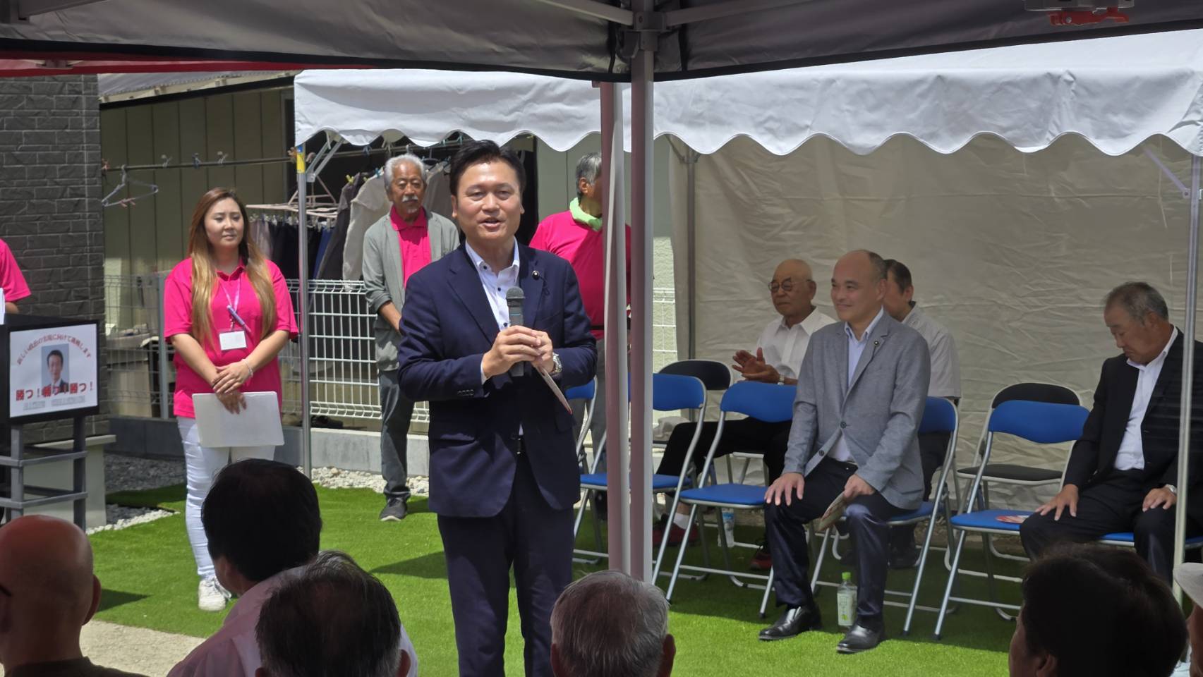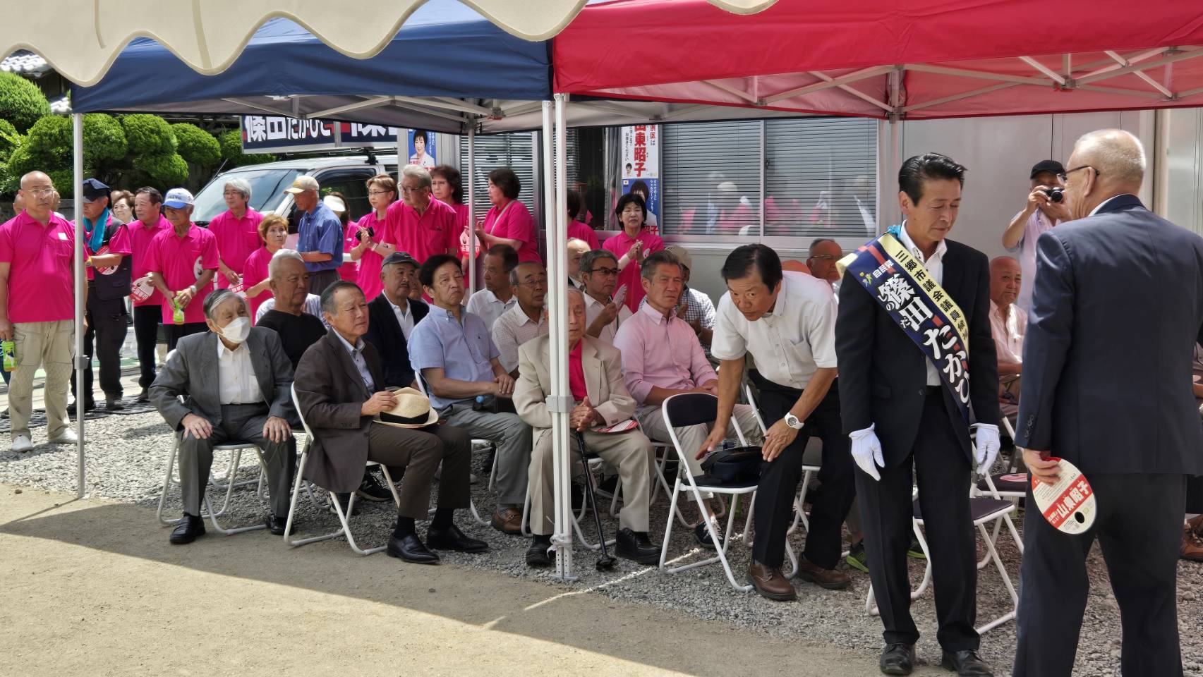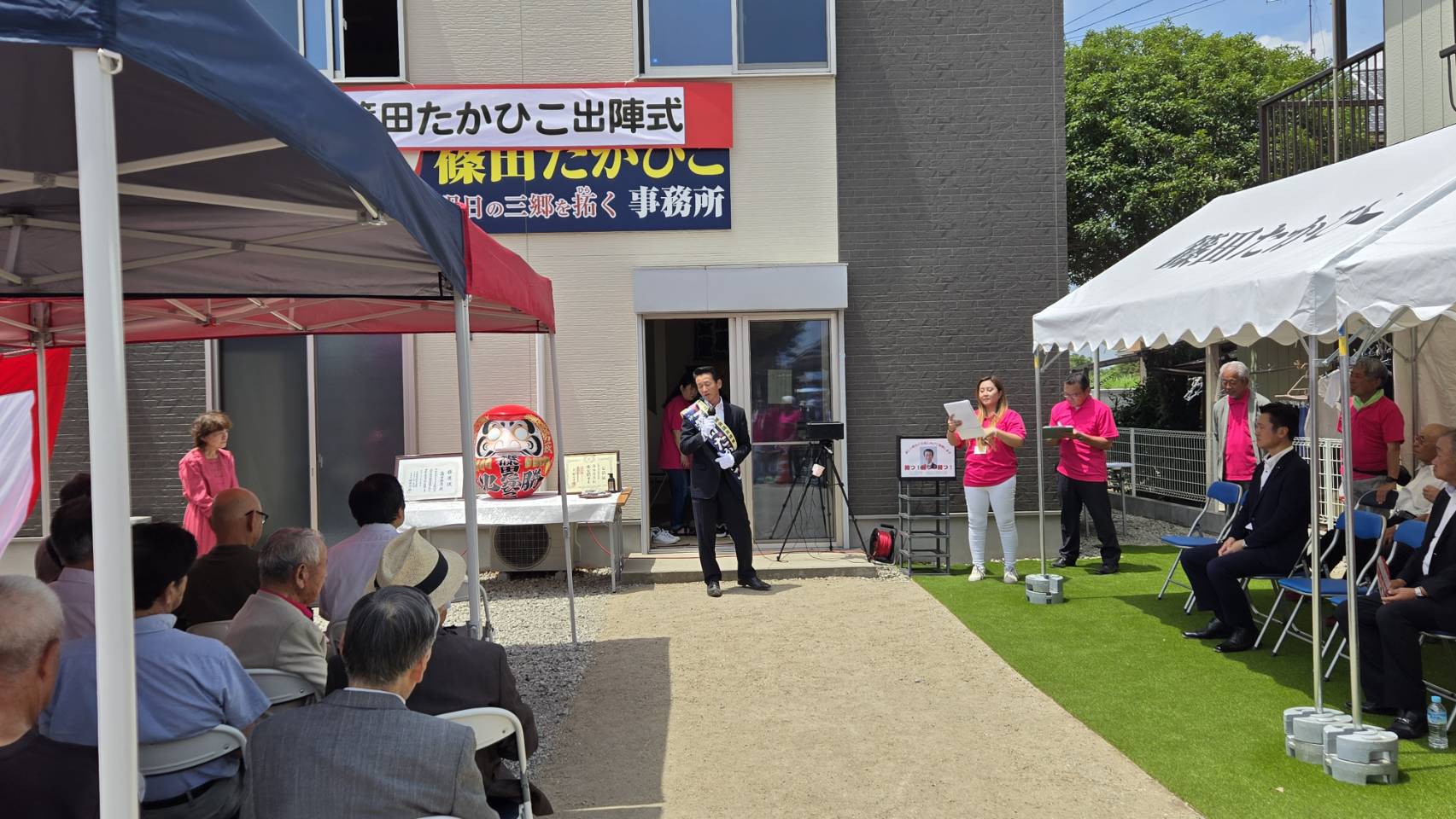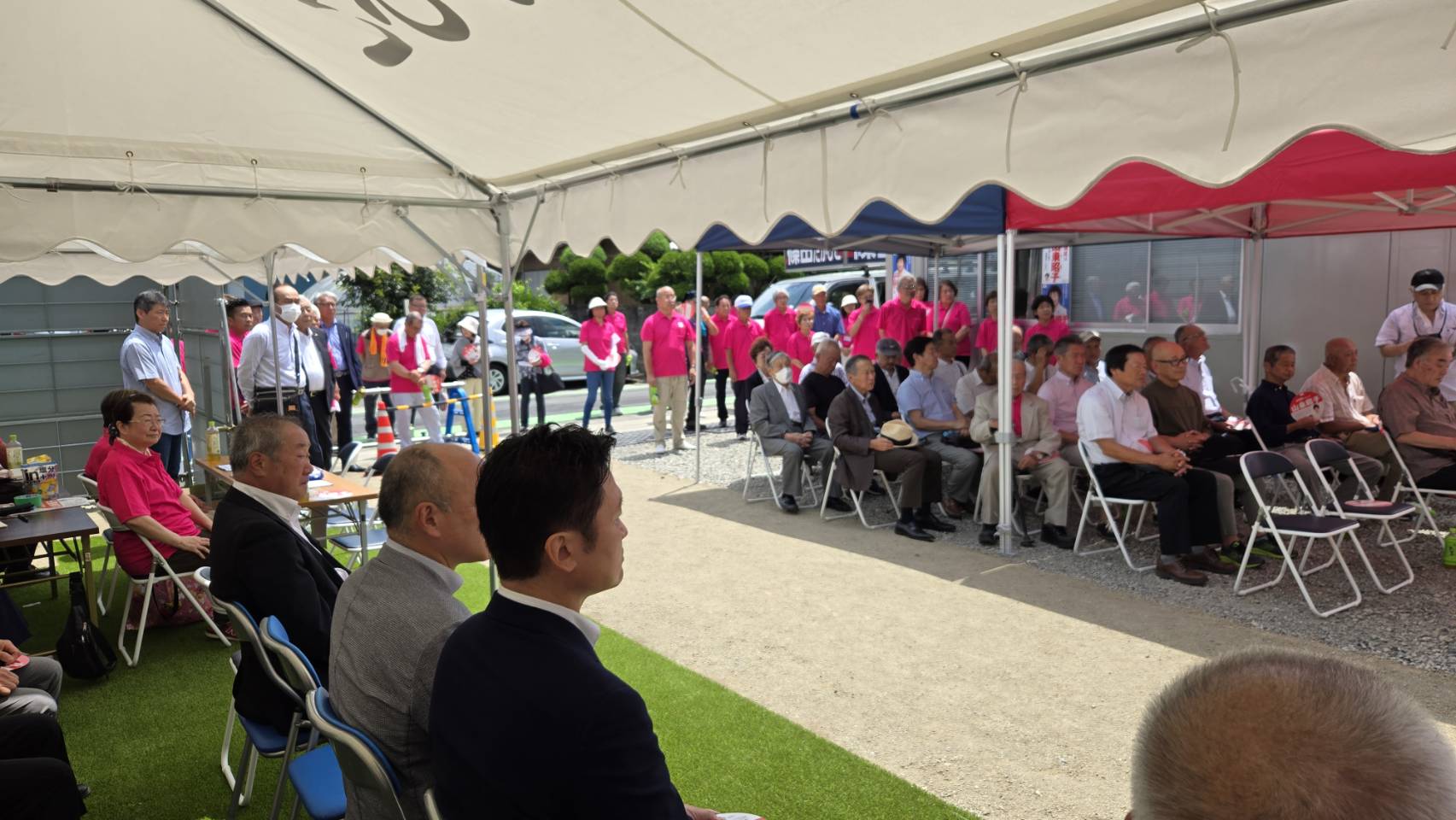 昨日とはうって変わって暑さが厳しく、それでも無事に出陣式を終え、街頭活動も出来ました。